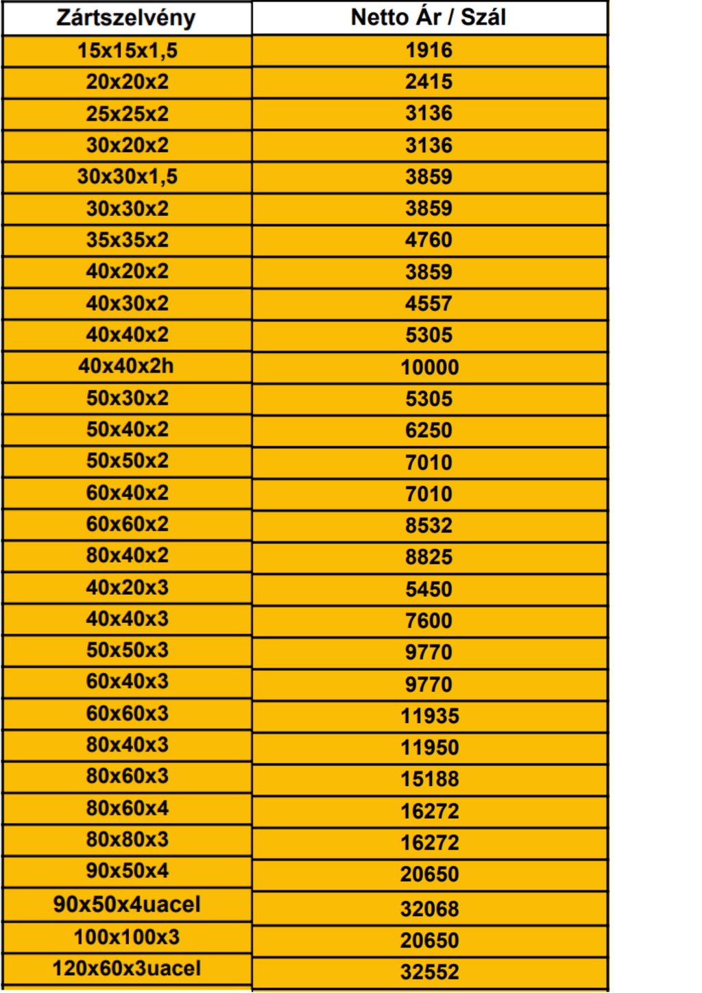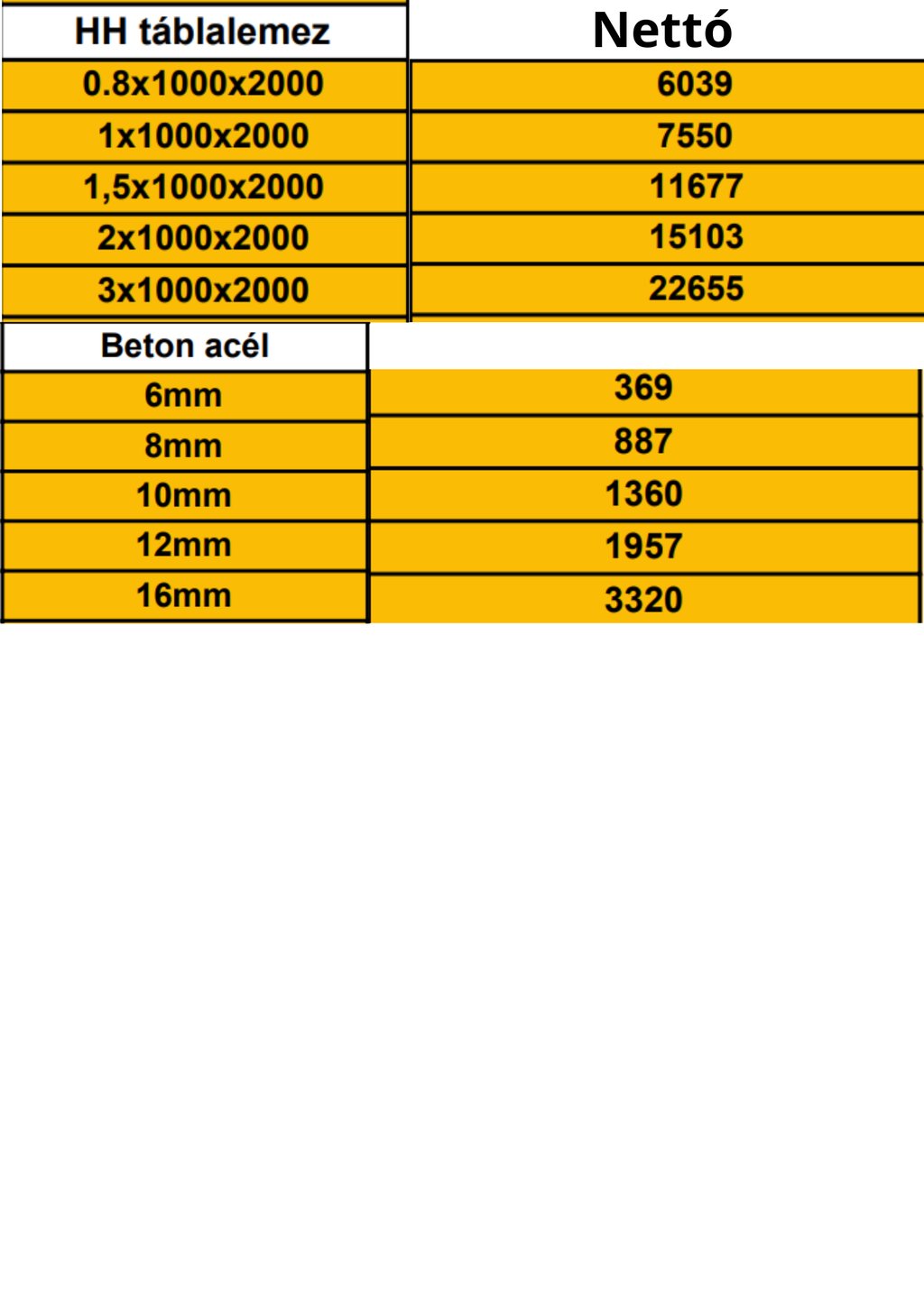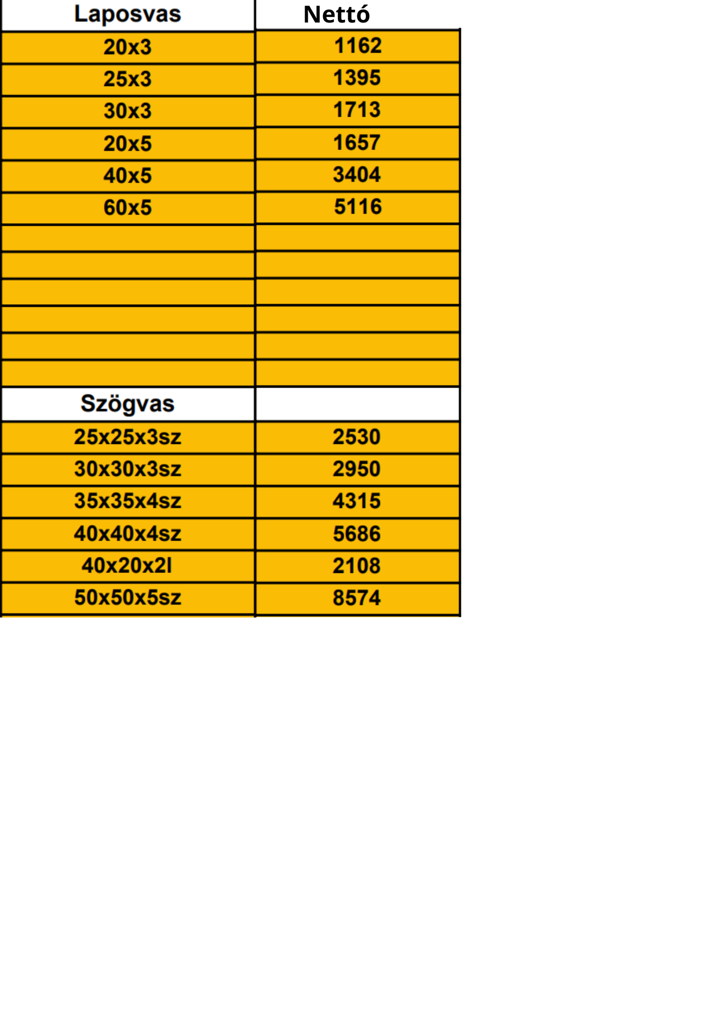 Betonvas, Betonháló, Laposvas, Szögvas, Zártszelvény...